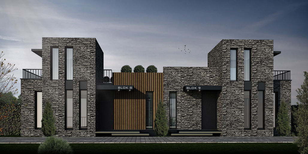 Büyük arazide farklı boyut ve tiplerde villa sitesi tasarımı.