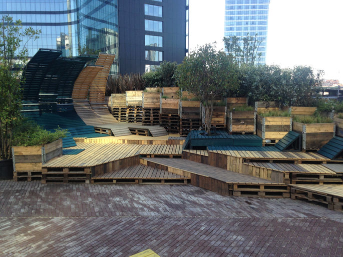 Sosyal ve kültürel odak yaratan, sürdürülebilir malzemelerle tasarlanmış açık hava etkinlik alanı.